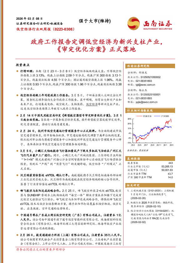【西南证券】【202603】低空经济行业双周报:政府工作报告定调低空经济为新兴支柱产业,《审定优化方案》正式落地-12页