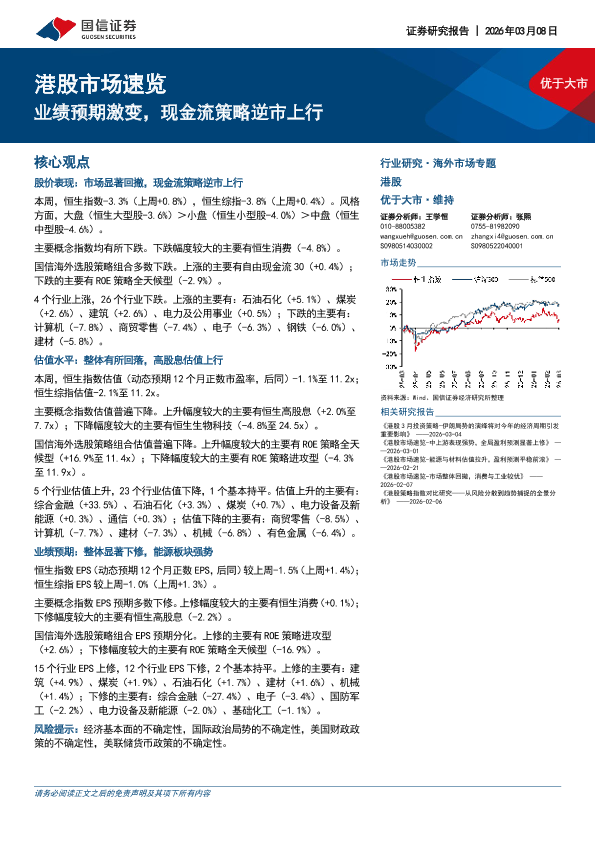 【国信证券】【202603】港股市场速览_业绩预期激变_现金流策略逆市上行-16页