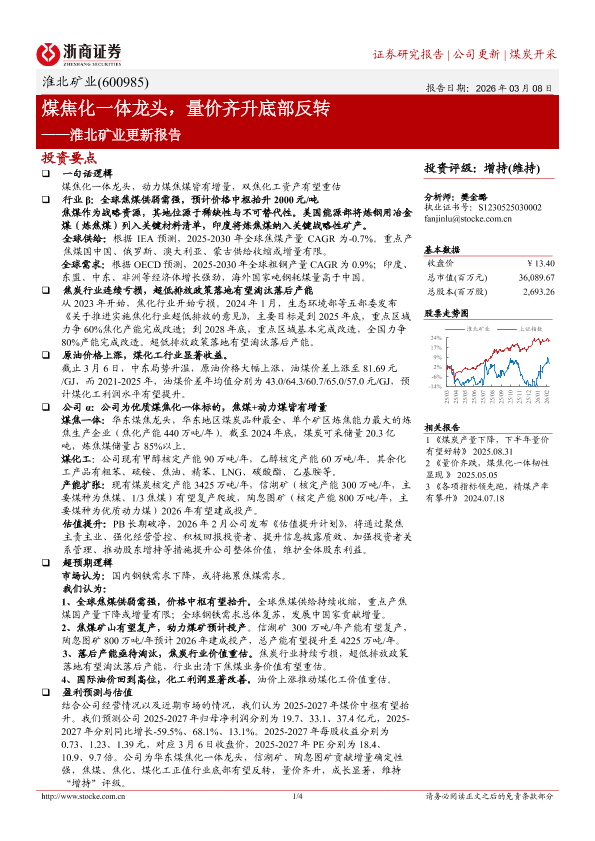 【浙商证券】【202403】煤焦化一体龙头,量价齐升底部反转——淮北矿业更新报告-4页
