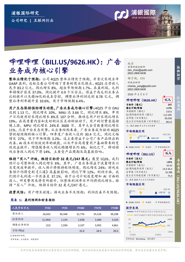 【浦银国际】【202603】哔哩哔哩(BILI.US/9626.HK):广告业务成为核心引擎-7页