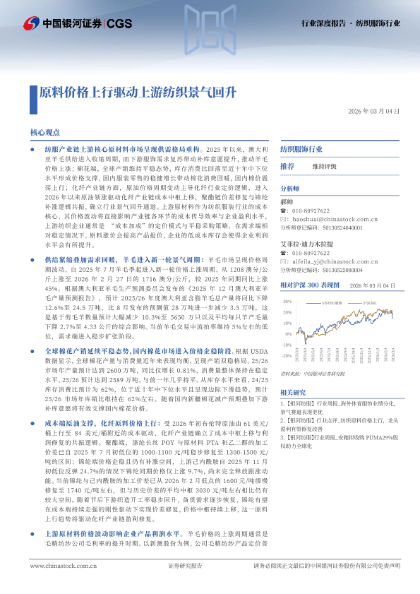 【银河证券】【202603】原料价格上行驱动上游纺织景气回升-26页