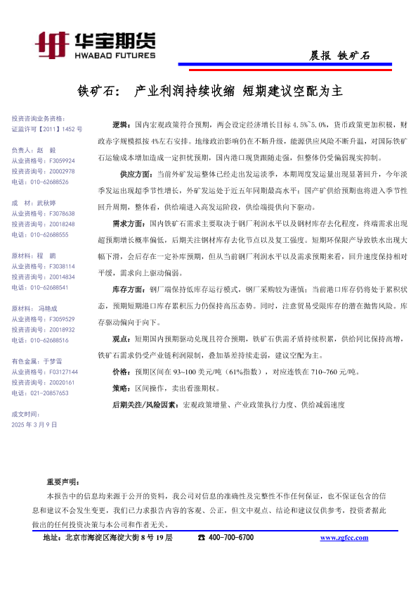 【华宝期货】【202503】铁矿石_产业利润持续收缩_短期建议空配为主-1页