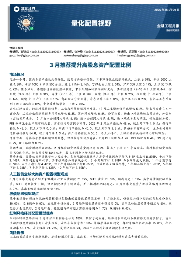 【国金证券】【202603】量化配置视野_3月推荐提升高股息资产配置比例-13页
