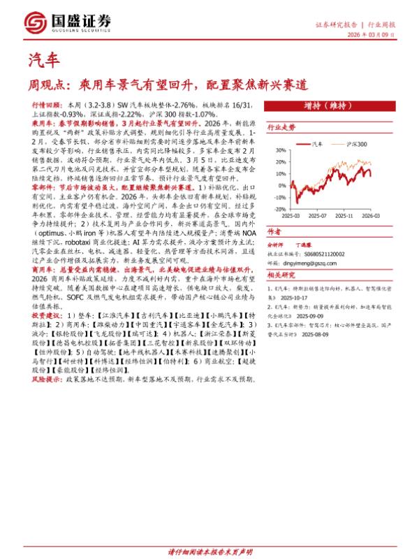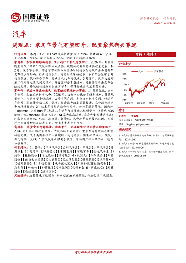 【国盛证券】【202603】周观点:乘用车景气有望回升,配置聚焦新兴赛道-8页