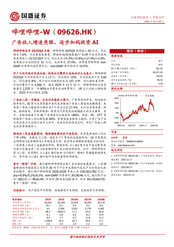 【国盛证券】【2025】哔哩哔哩-W(09626.HK):广告收入增速亮眼,逐步加码投资AI-5页