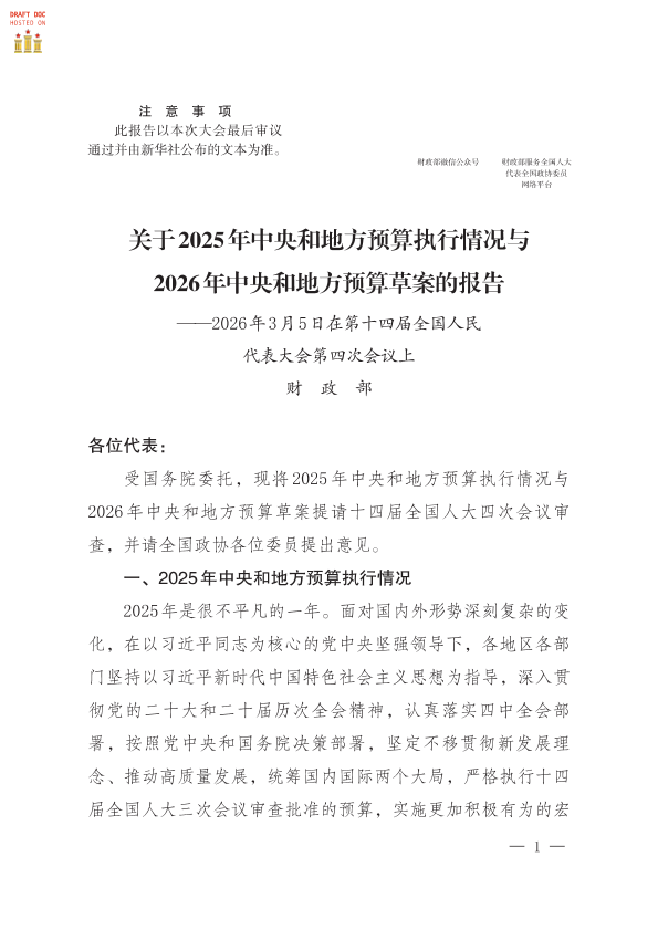 【财政部】【202603】关于2025年中央和地方预算执行情况与2026年中央和地方预算草案的报告-90页
