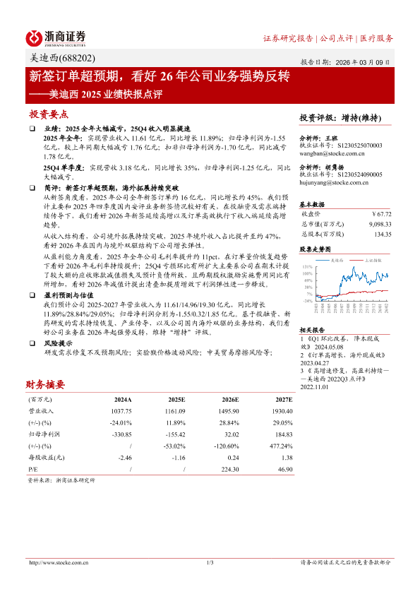 【浙商证券】【2025】新签订单超预期,看好 26年公司业务强势反转——美迪西 2025业绩快报点评-3页