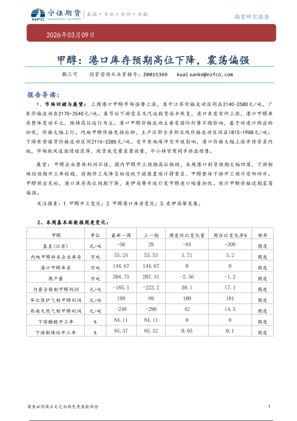 【宁证期货】【202603】甲醇:港口库存预期高位下降,震荡偏强-5页
