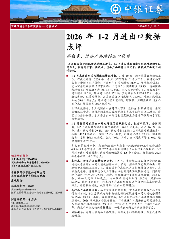 【中银证券】【202603】2026年1-2月进出口数据点评:高技术、设备产品维持出口优势-4页