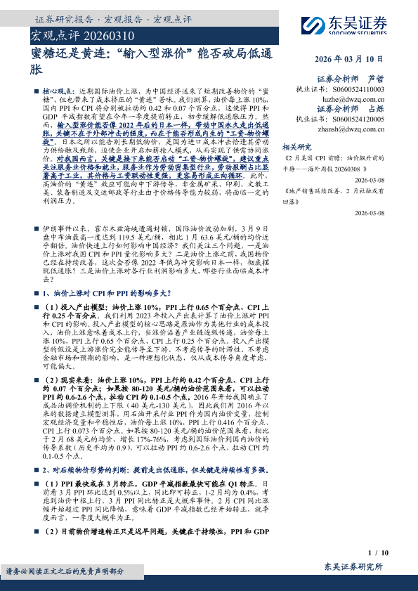 【东吴证券】【202603】蜜糖还是黄连:“输入型涨价”能否破局低通 胀-10页