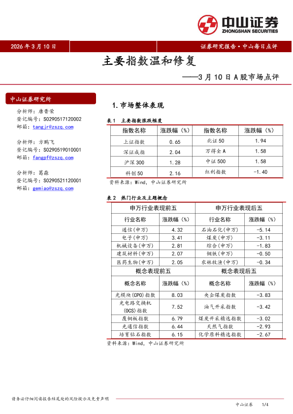 【中山证券】【202603】2026年 3月 10日 证券研究报告·中山每日点评 主要指数温和修复-4页
