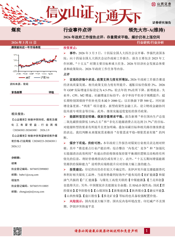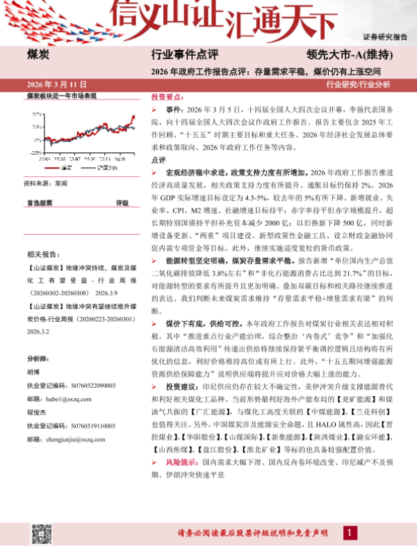 【山西证券】【202603】2026年政府工作报告点评:存量需求平稳,煤价仍有上涨空间-3页