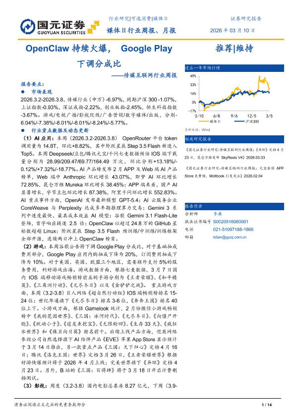 【国元证券】【202603】OpenClaw持续火爆, Google Play下调分成比-14页