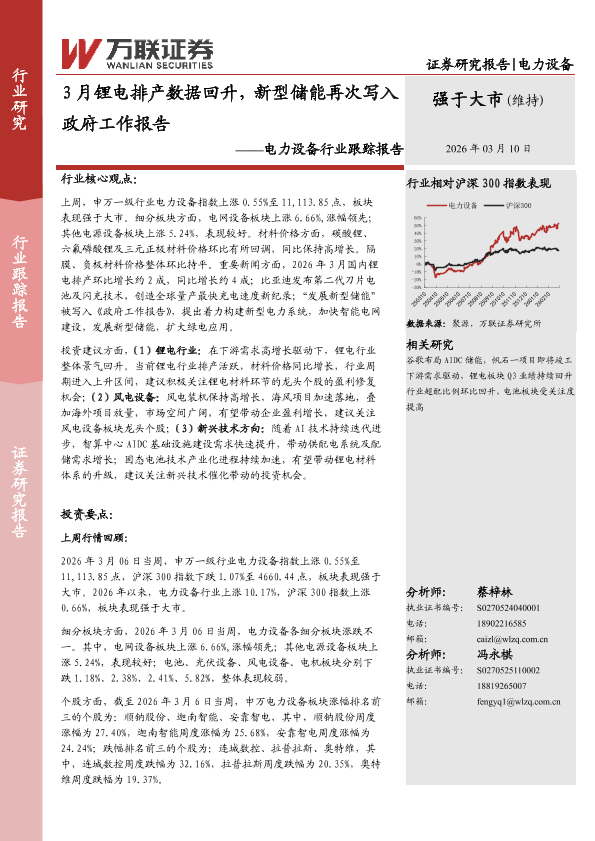 【万联证券】【202603】3月锂电排产数据回升,新型储能再次写入 政府工作报告-10页