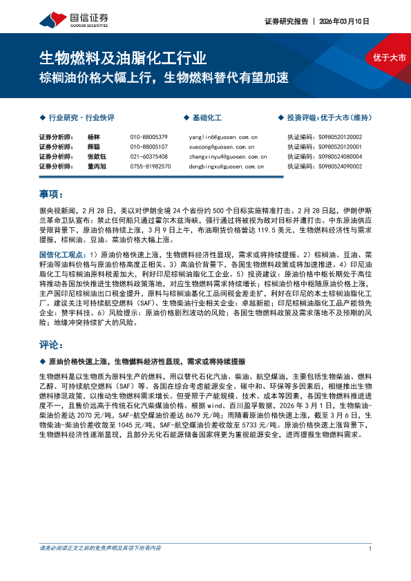 【国信证券】【202603】生物燃料及油脂化工行业:棕榈油价格大幅上行,生物燃料替代有望加速-6页
