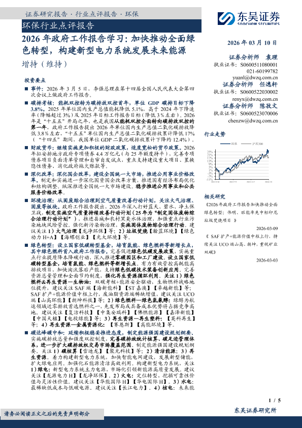 【东吴证券】【202603】2026年政府工作报告学习:加快推动全面绿色转型,构建新型电力系统发展未来能源-5页