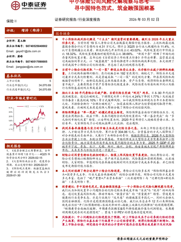 【中泰证券】【202603】中小保险公司风险化解观察与思考——寻中国特色范式,筑金融强国根基-25页