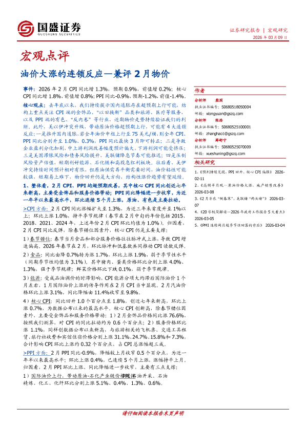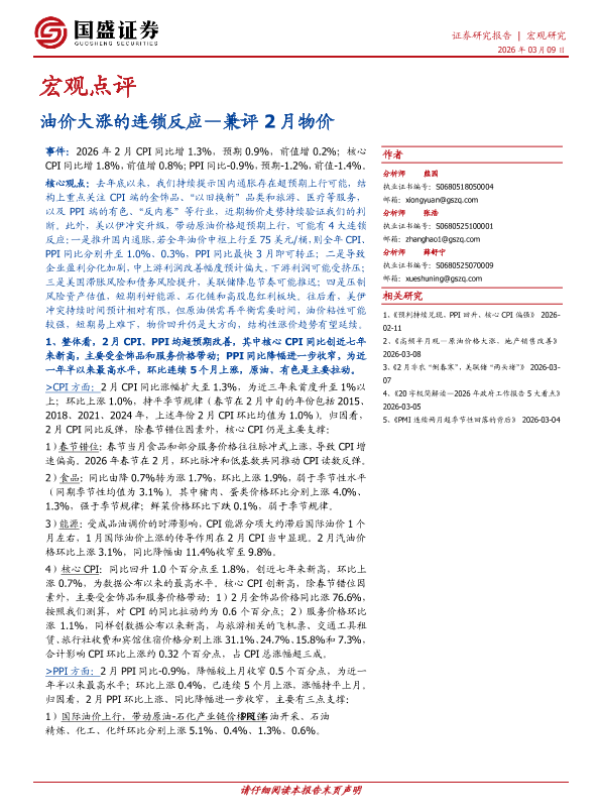 【国盛证券】【202603】油价大涨的连锁反应—兼评 2月物价-6页