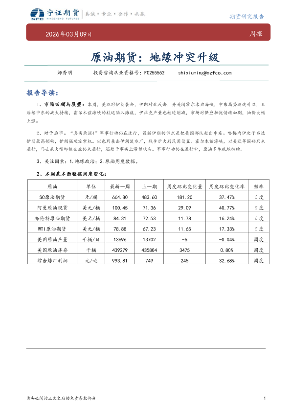【宁证期货】【202603】原油期货:地缘冲突升级-7页