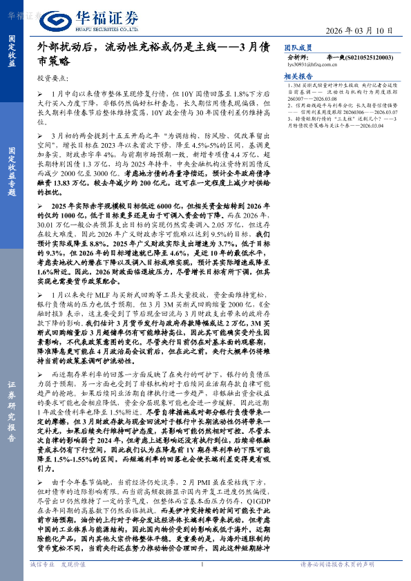 【华福证券】【202603】外部扰动后,流动性充裕或仍是主线——3月债市策略-16页