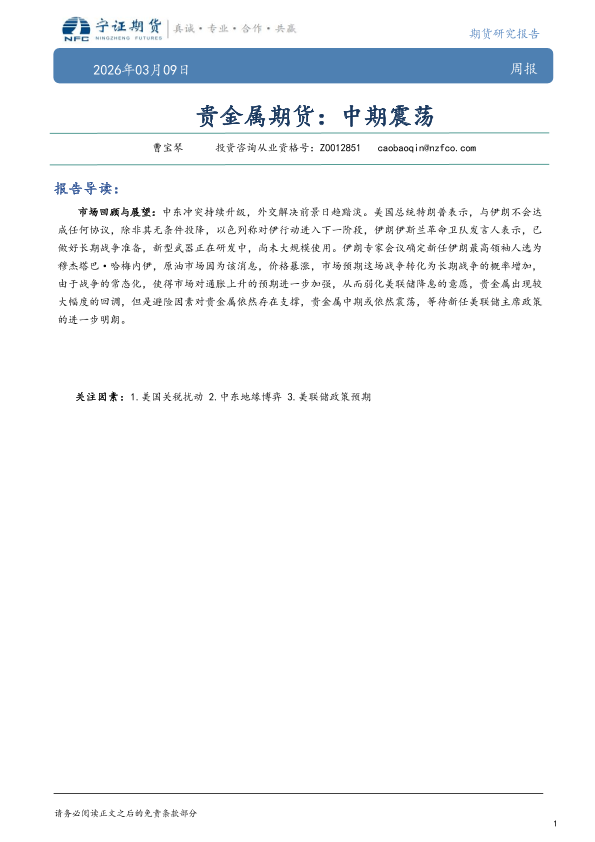 【宁证期货】【202603】贵金属期货:中期震荡-6页