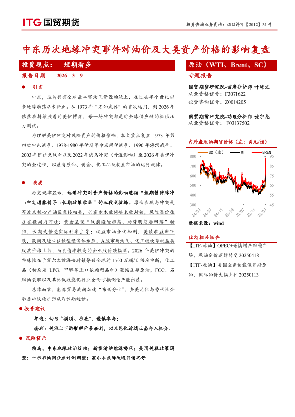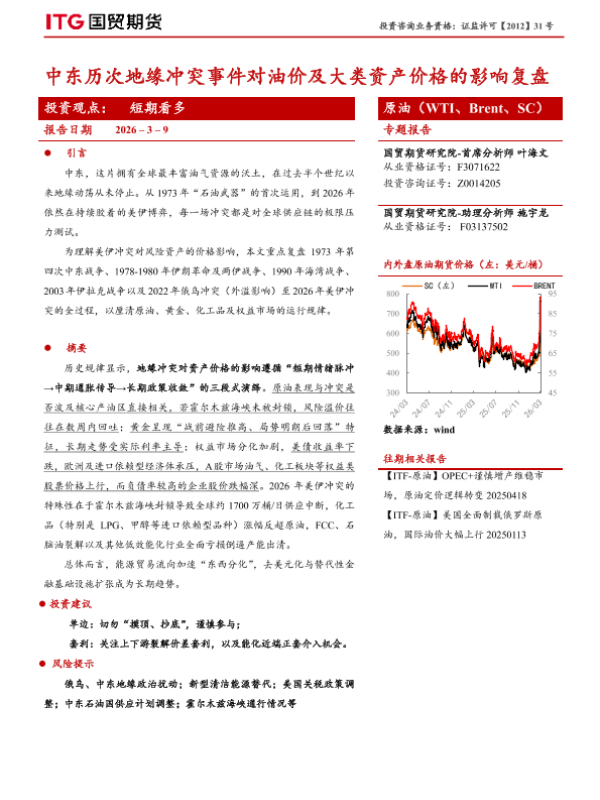 【国贸期货】【202603】中东历次地缘冲突事件对油价及大类资产价格的影响复盘-15页