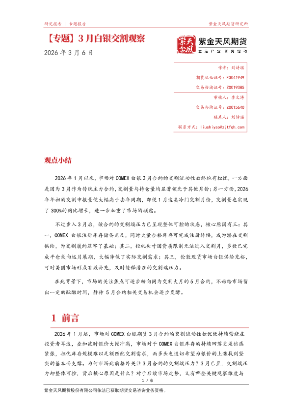 【紫金天风期货】【202603】3月白银交割观察-6页