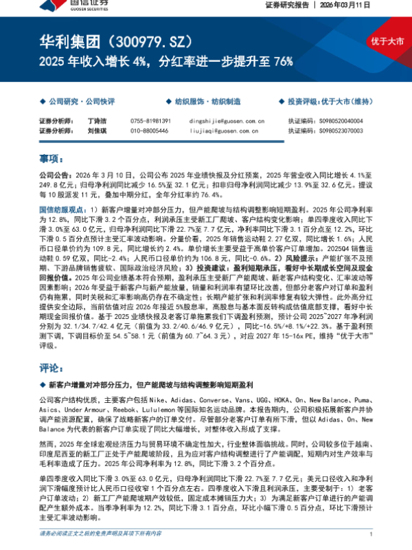 投资评级 运动鞋 制造业 分红预案 盈利预测