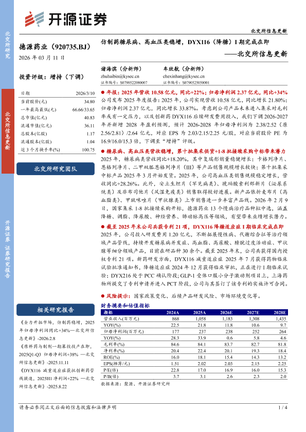 【开源证券】【202603】北交所信息更新:仿制药糖尿病、高血压类稳增,DYX116(降糖)I期完成在即-4页