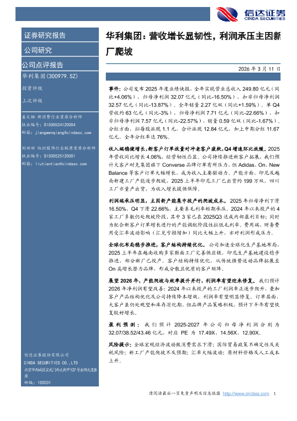 【信达证券】【202603】华利集团:营收增长显韧性,利润承压主因新厂爬坡-5页