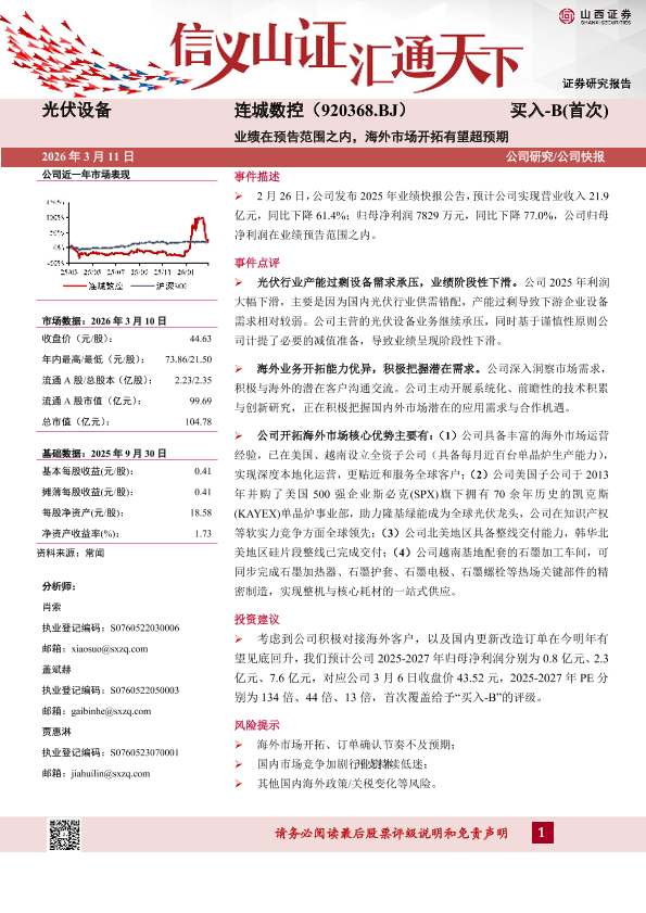 【山西证券】【202603】光伏设备 连城数控(920368.BJ) 买入-B(首次)-5页