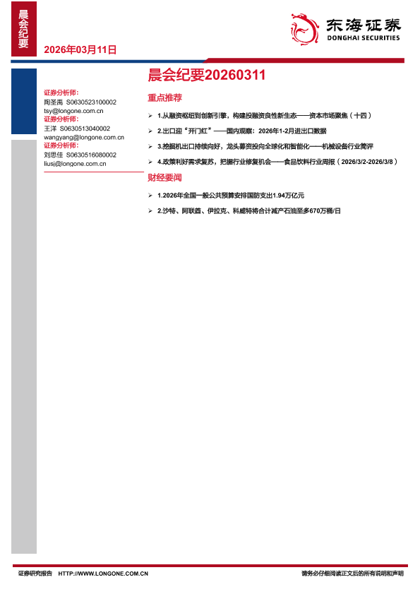 【东海证券】【202603】晨会纪要20260311-12页