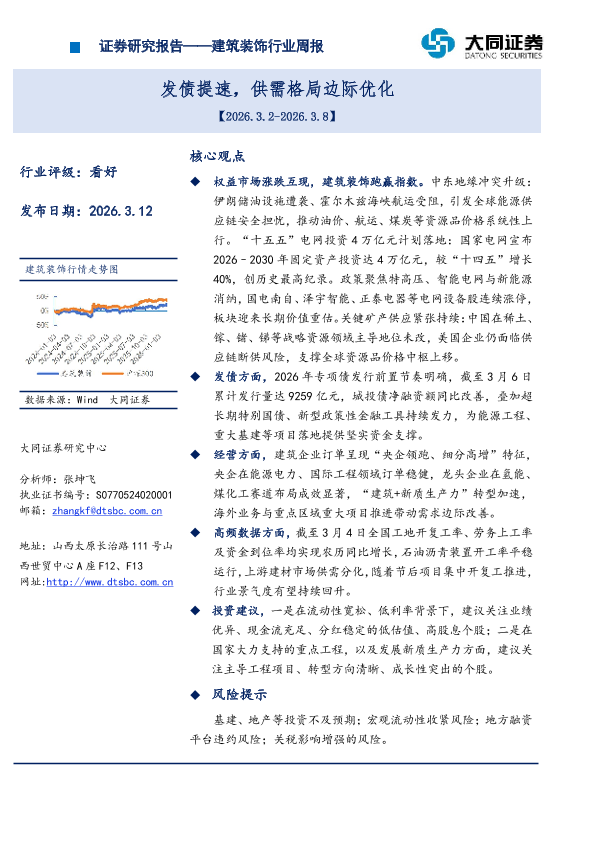 发债政策 电网投资 行业估值 建筑装饰 地缘冲突