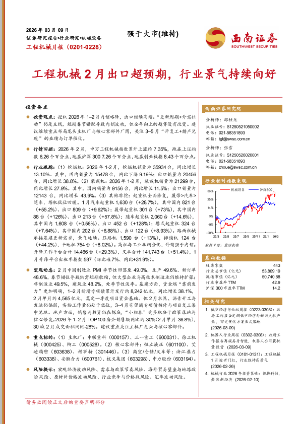 【西南证券】【202603】工程机械2月出口超预期,行业景气持续向好-12页