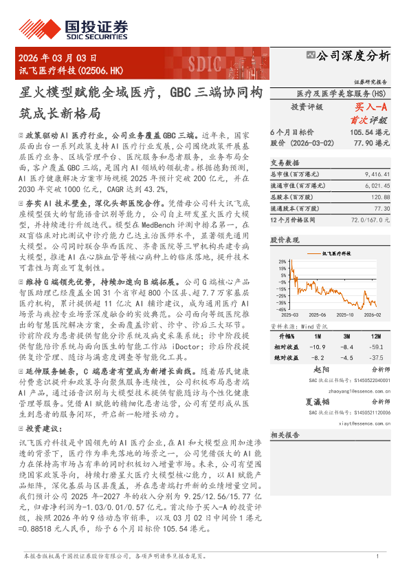 【国投证券】【202603】讯飞医疗科技(02506.HK)星火模型赋能全域医疗,GBC三端协同构筑成长新格局-46页