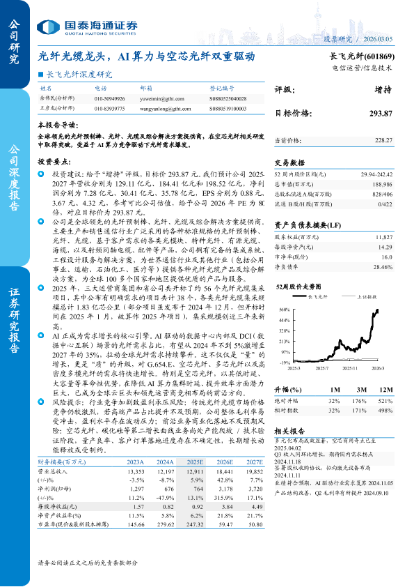 【国泰海通证券】【202503】光纤光缆龙头,AI算力与空芯光纤双重驱动-39页