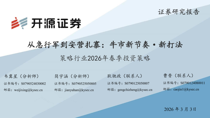 【开源证券】【202603】从急行军到安营扎寨:牛市新节奏·新打法策略行业2026年春季投资策略-41页