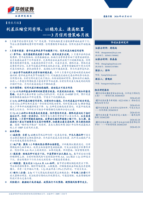 【华创证券】【202603】利差压缩空间有限,以稳为主、逢高配置——3月信用债策略月报-29页