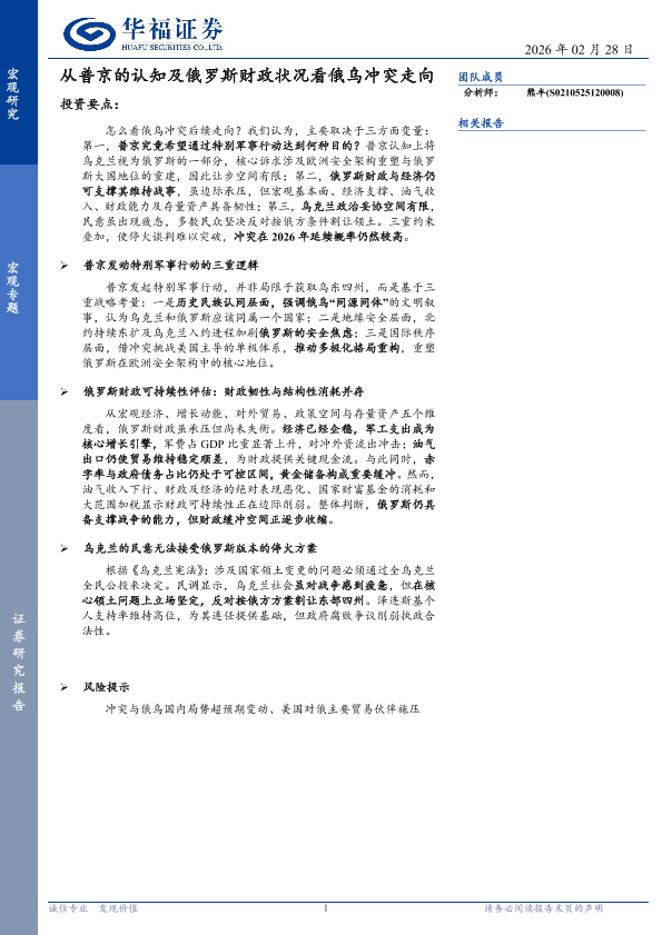 【华福证券】【202602】从普京的认知及俄罗斯财政状况看俄乌冲突走向-16页