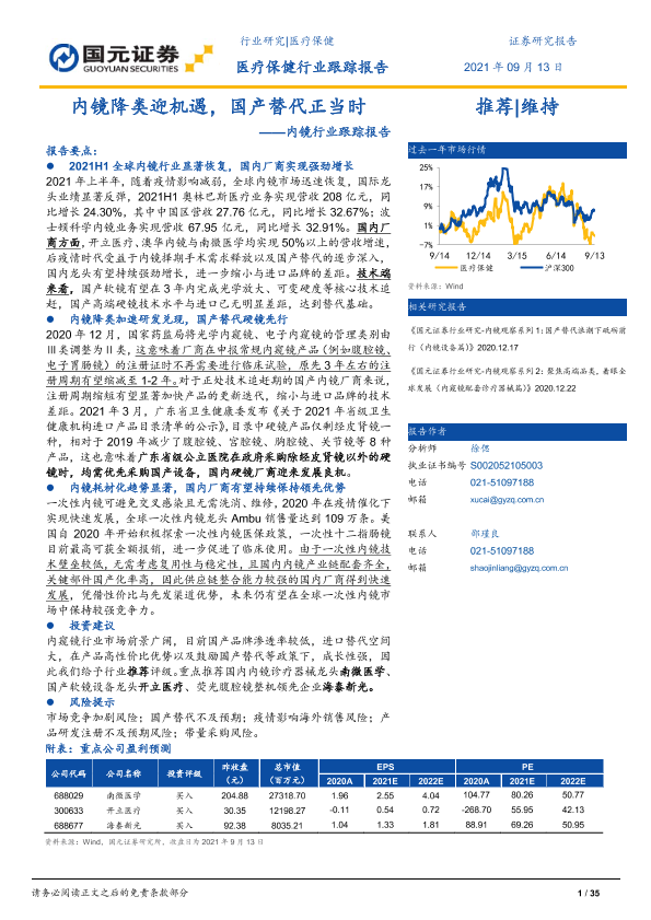 【国元证券】【20210913】内镜行业跟踪报告:内镜降类迎机遇,国产替代正当时-35页