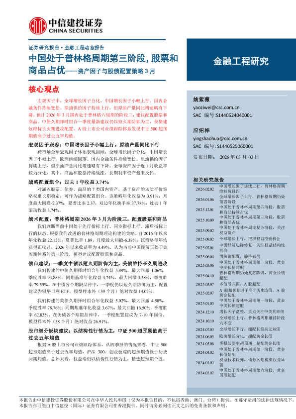 【中信建投证券】【202603】资产因子与股债配置策略3月:中国处于普林格周期第三阶段,股票和商品占优-20页