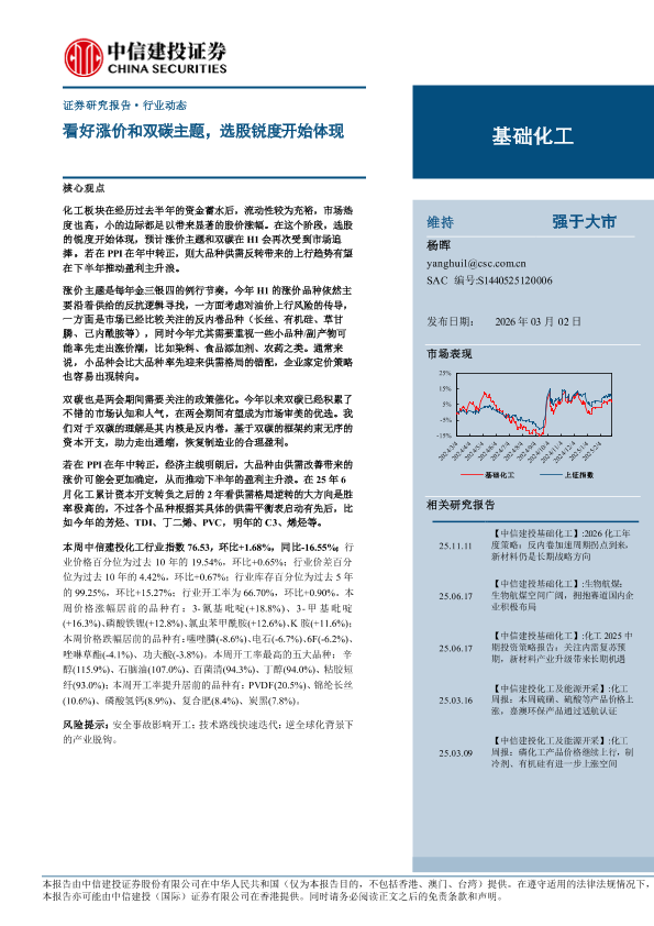 行业动态 化工 涨价主题 双碳政策 投资策略