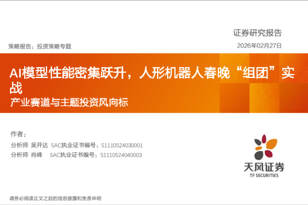 【天风证券】【202602】产业赛道与主题投资风向标:AI模型性能密集跃升,人形机器人春晚“组团”实战-42页