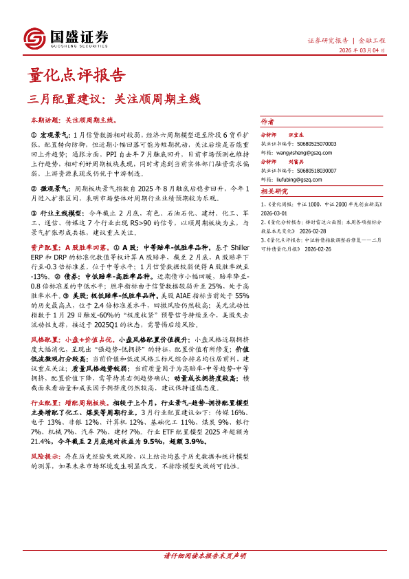 【国盛证券】【202603】三月配置建议:关注顺周期主线-16页