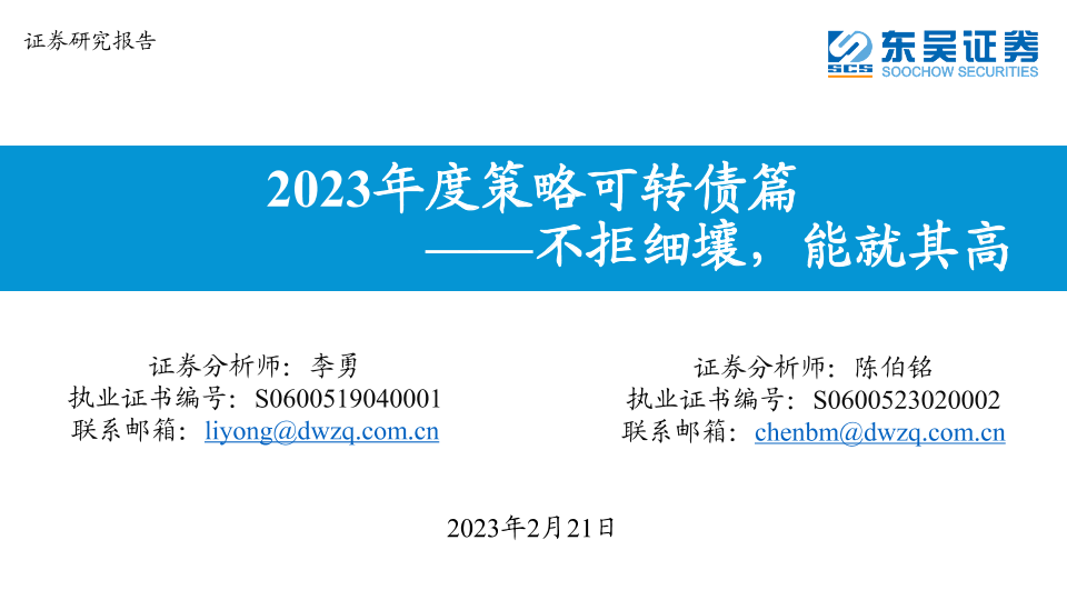 【东吴证券】【20230221】2023年度策略可转债篇:不拒细壤,能就其高-67页