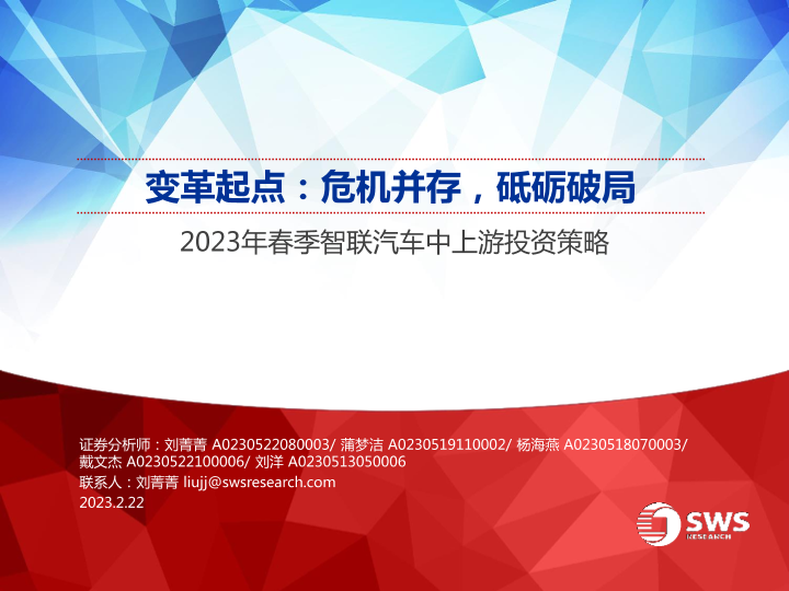 【申万宏源】【20230222】2023年春季智联汽车行业中上游投资策略:变革起点,危机并存,砥砺破局-52页