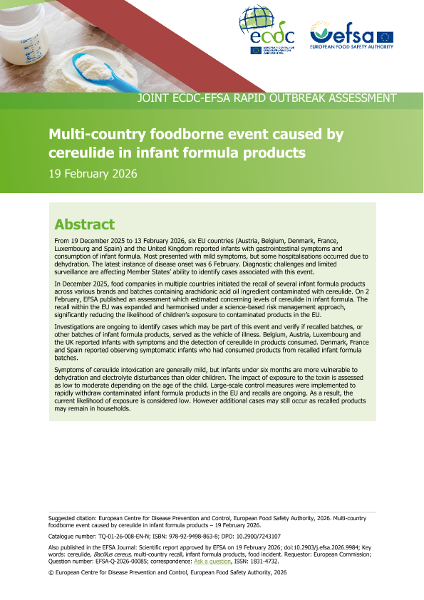 【European Centre for Disease Prevention and Control&European Food Safety Authority】【2026】Multi-country foodborne event caused by cereulide in infant formula products – 19 Februar y 2026-11页