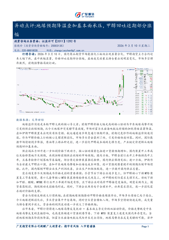 【广发期货】【202603】异动点评 地缘预期降温叠加基本面承压,甲醇回吐近期部分涨幅-3页
