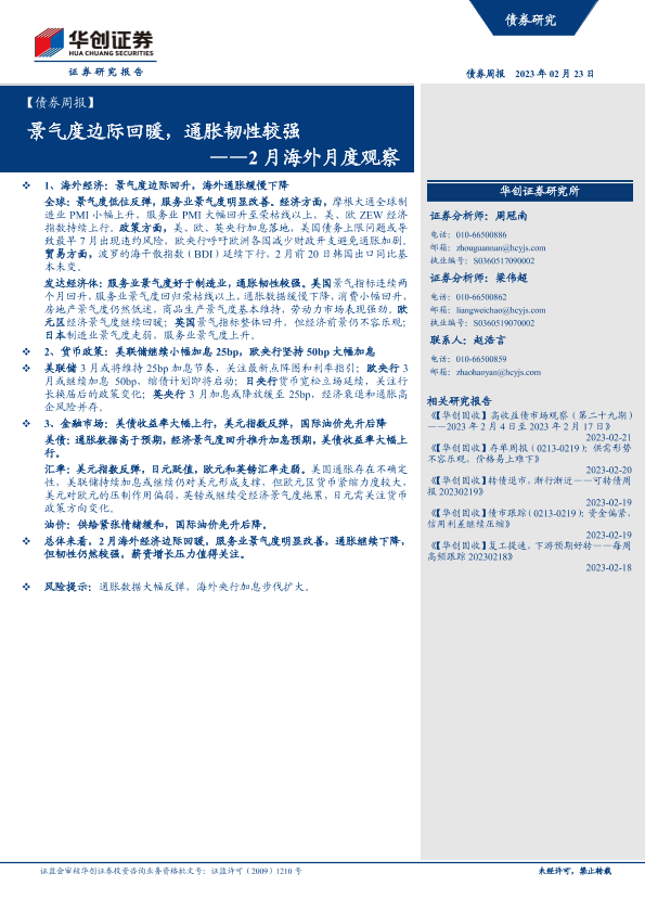 债券研究 海外经济 货币政策 通胀分析 金融市场