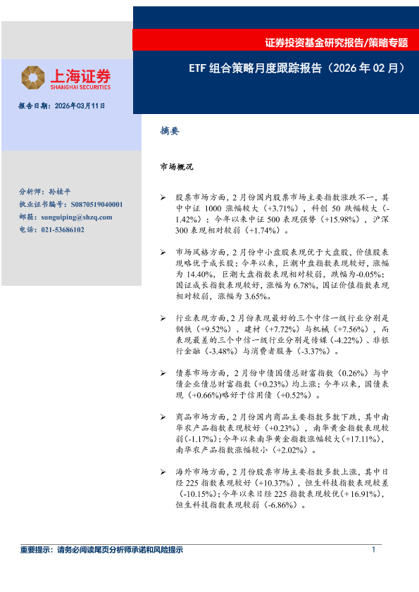 【上海证券】【202603】ETF组合策略月度跟踪报告(2026年02月)-20页